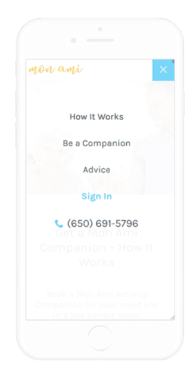 Service that provides senior companion care services in San Francisco Bay Area, connecting families caring for an aging loved one (or with dementia, Alzheimer's, Parkinson's) with Activity Companions.